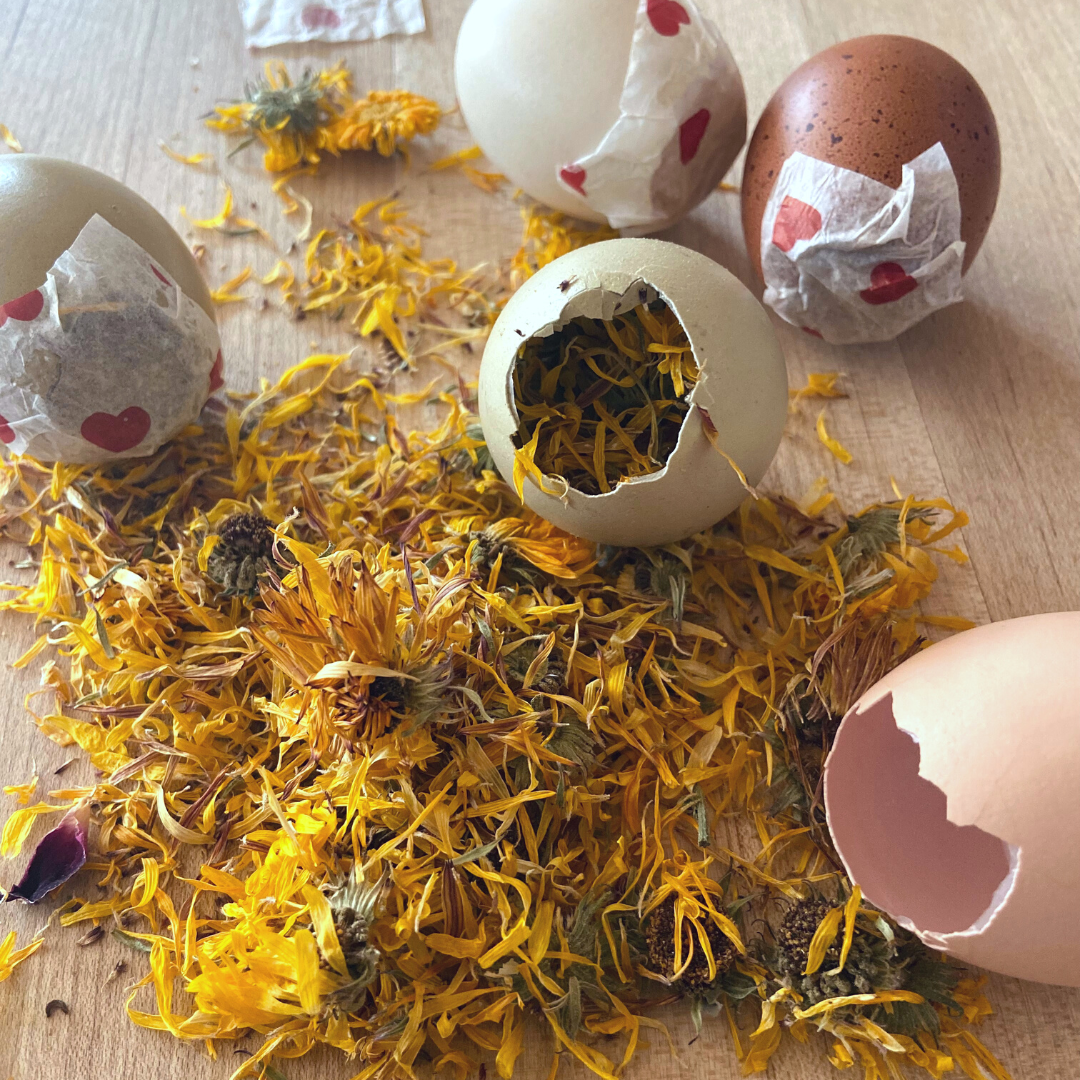 * Create confetti egg poppers, dye with tulips + make wax sachets