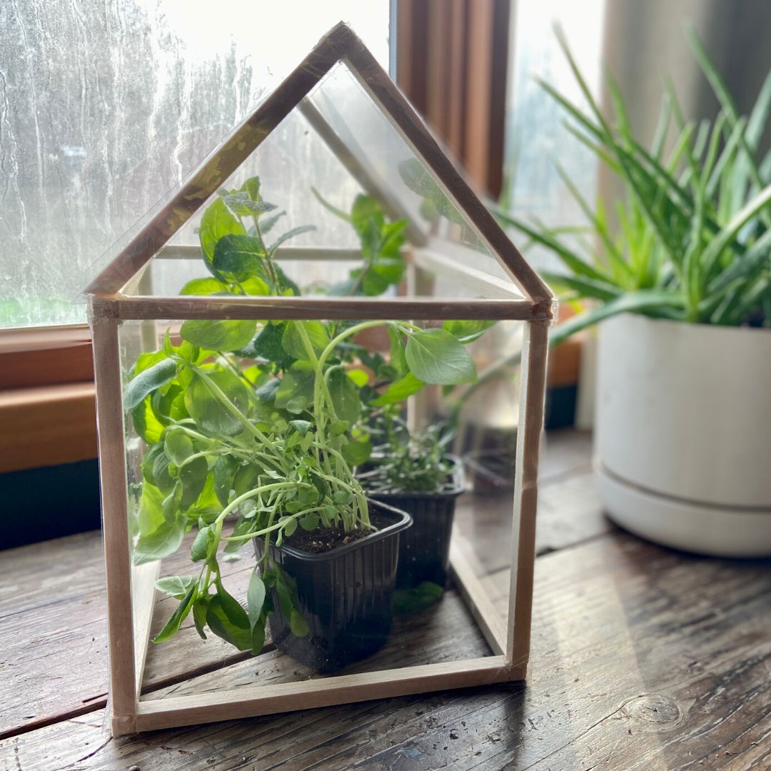 * Create a botanical book, assemble a tabletop greenhouse + weave pine needle trivets