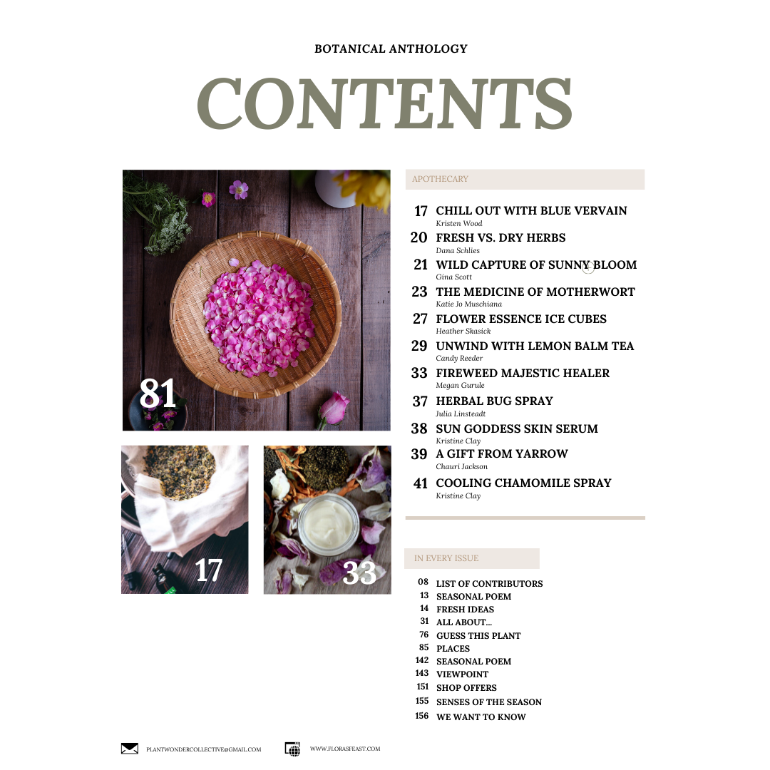 It is a seasonal, plant centered digital + print magazine bringing you over 45+ articles from 30 contributors to help you incorporate herbs in your apothecary, kitchen, harvests, craft, celebrations and more.