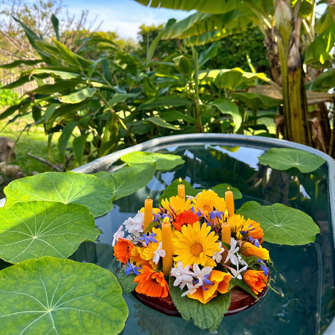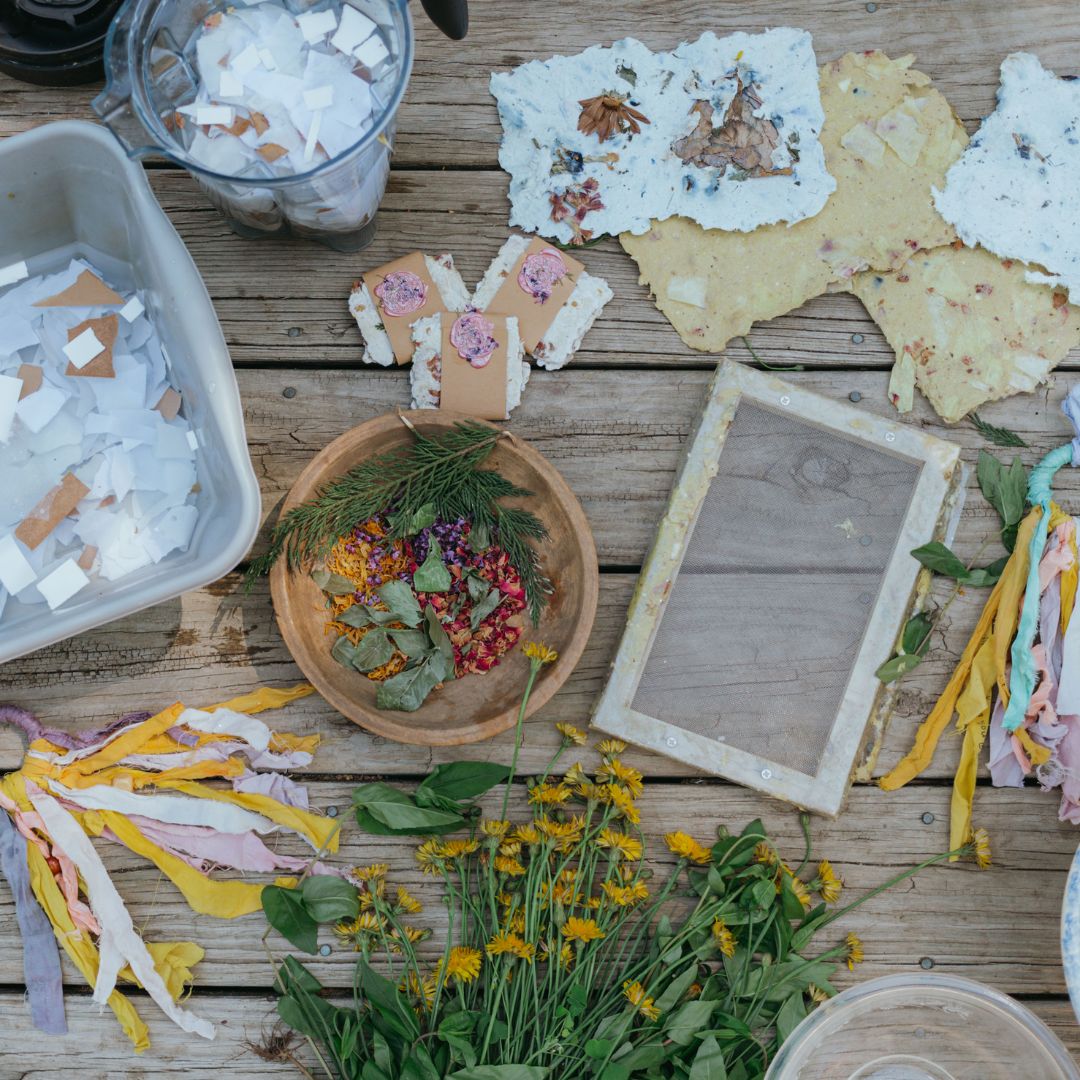 * Make sun prints with turmeric, beeswax dip plants for a garland + sew peppermint repellent sachets