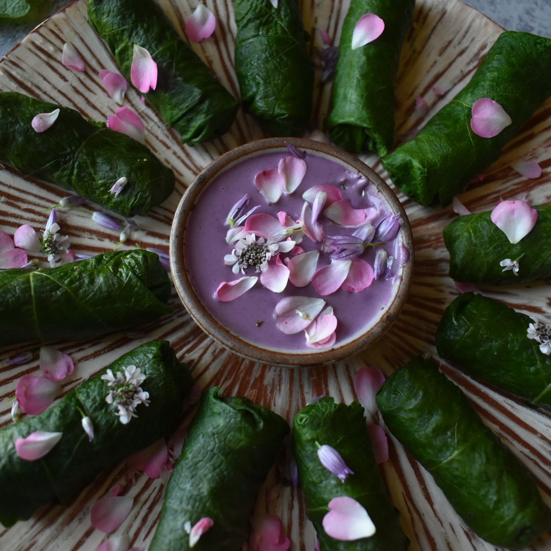 * Bake a cake with elderflower, sip a coriander lime cooler + dip hollyhock wraps in rose tahini sauce