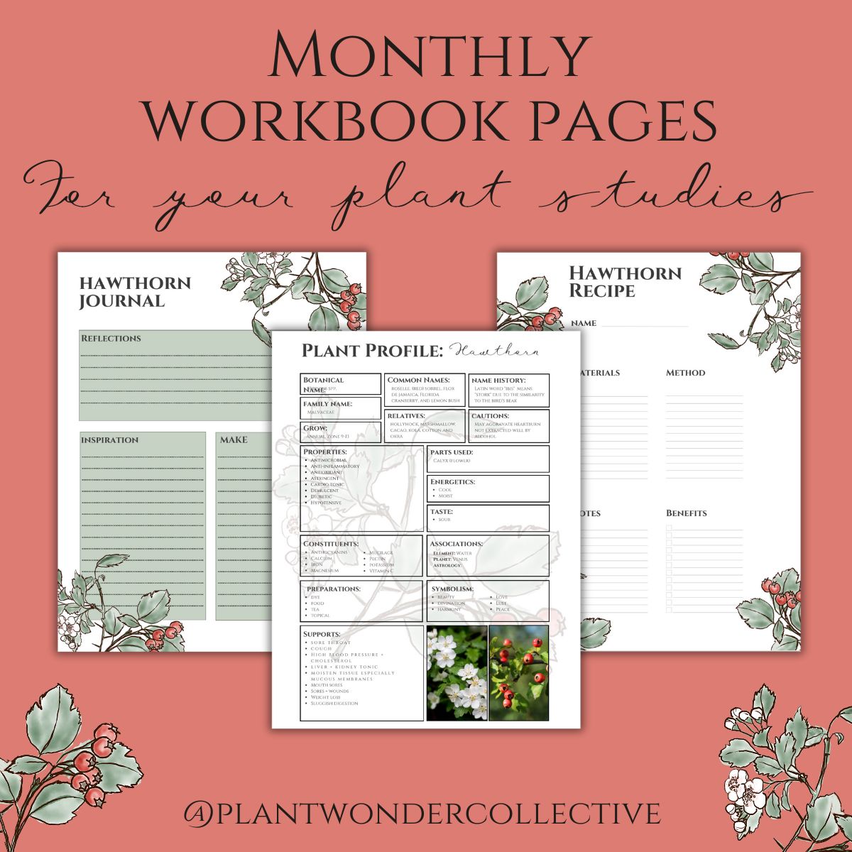 To support your Hawthorn studies, this bundle contains PDFs ready for you to create your very own Plant Profile, take Journal Notes, contemplate Journaling Prompts and Mantra, utilize pretty Jar Labels for your creations, fill-in Recipe Card and use our Book Mark as you study.