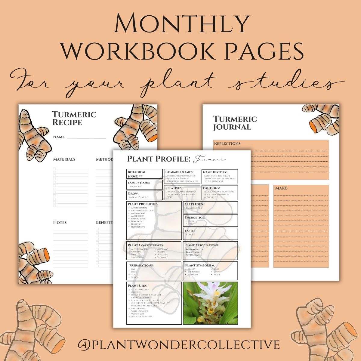 To support your Turmeric studies, this bundle contains PDFs ready for you to create your very own Plant Profile, take Journal Notes, contemplate Journaling Prompts and Mantra, utilize pretty Jar Labels for your creations, fill-in Recipe Card and use our Book Mark as you study.