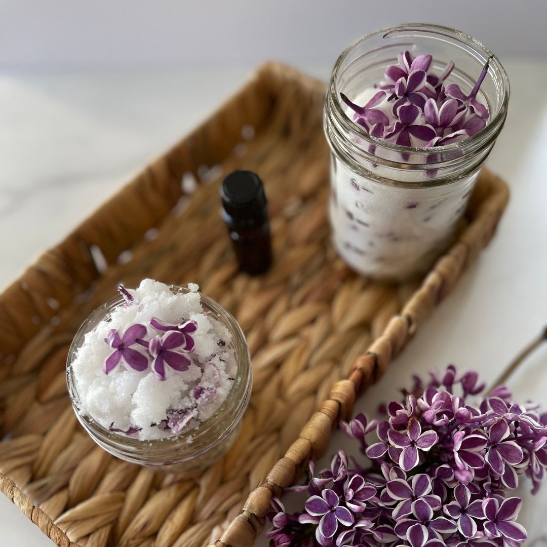 * Blend lilac sugar scrub, infuse allergy vinegar + whip spring weeds body butter