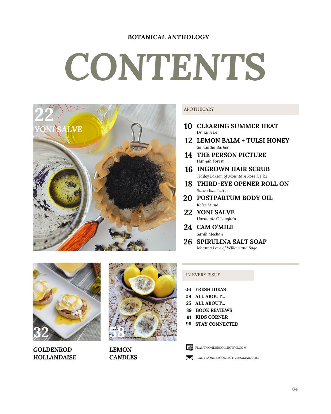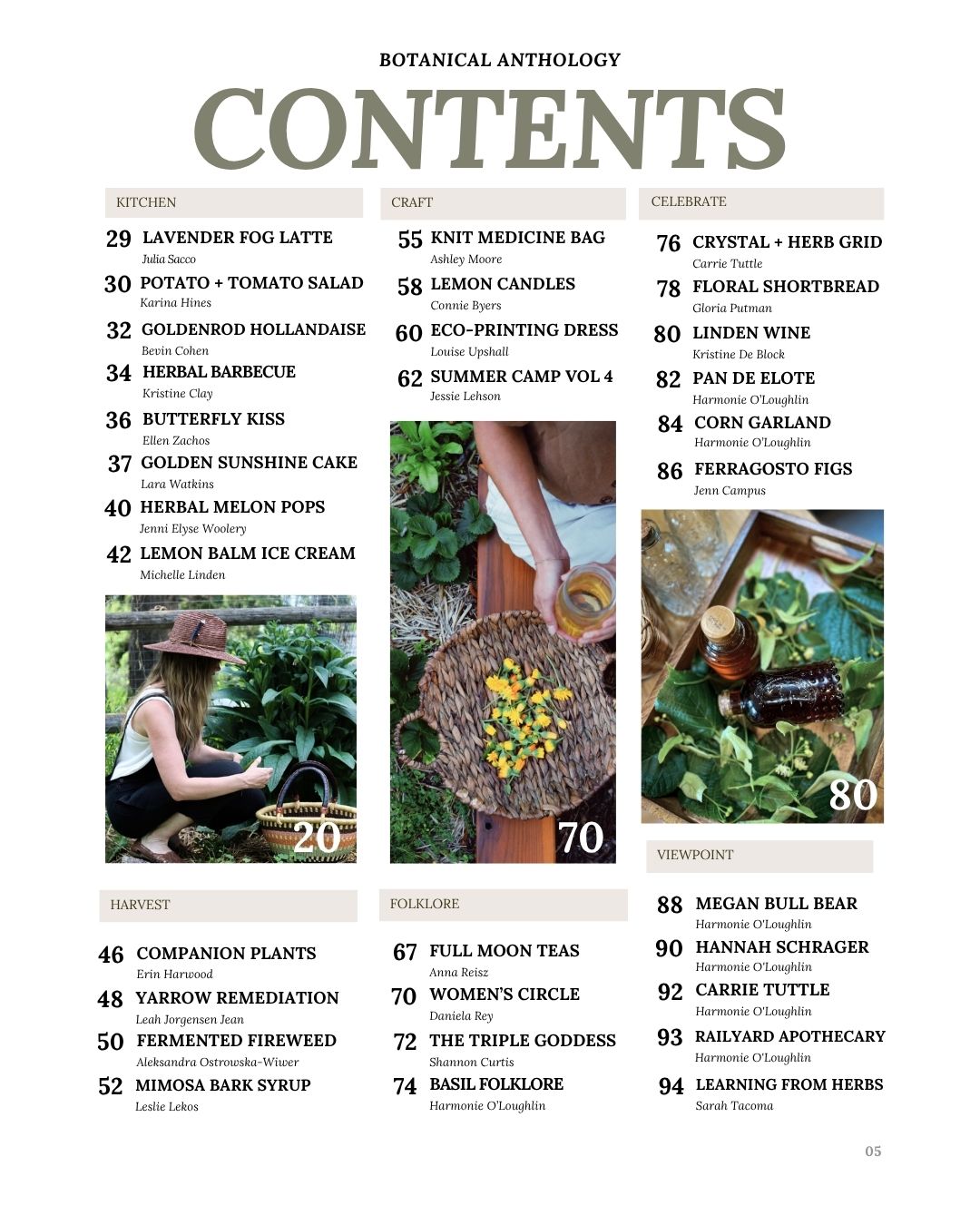 This publication is comprised of 7 subsections: Apothecary, Kitchen, Harvest, Craft, Folklore, Celebrate + Viewpoint.